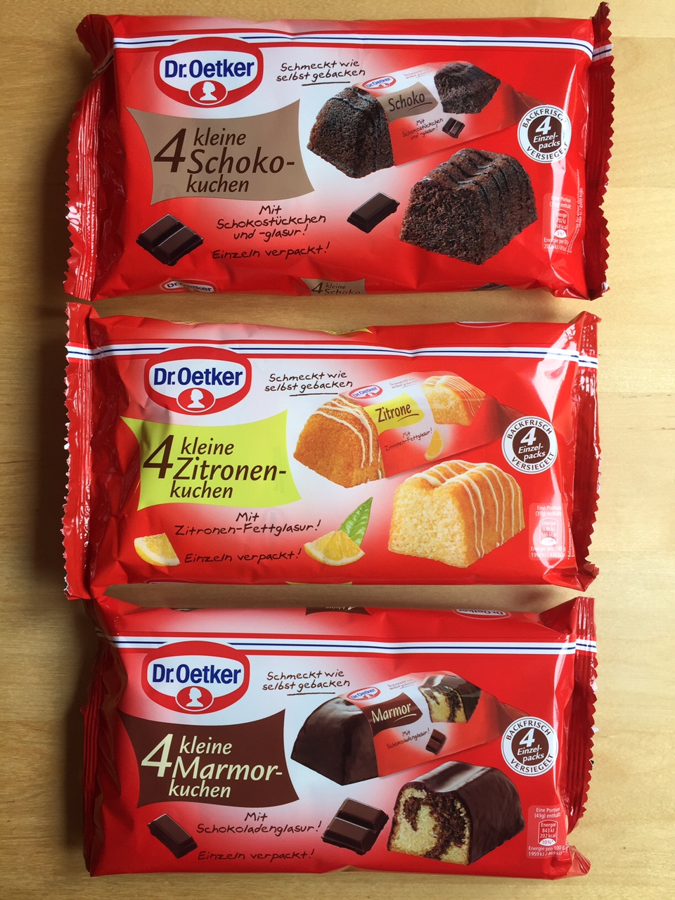 Laut Dr. Oetker “sehen die Küchlein nicht nur aus wie selbstgebacken, sie schmecken auch so. Sie überzeugen durch ihren intensiven Geschmack und die saftige Konsistenz und sind jederzeit genussbereit!” Aber damit werben ja alle Hersteller von Fertigkuchen… Leider mussten wir die Erfahrung machen, dass viele Kuchen dieser Art aber leider nicht wie selbstgebacken schmecken, sondern eher künstlich oder auch zu trocken sind.