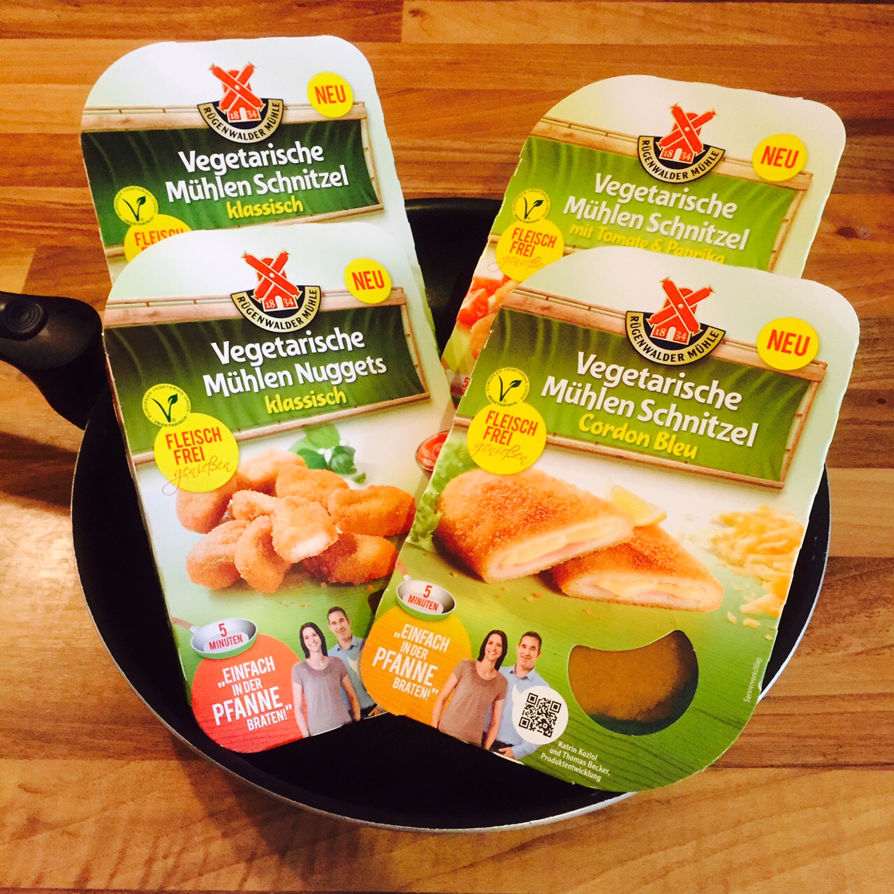 Die Schnitzel und auch die Nuggets sind kinderleicht zuzubereiten. Einfach 5 Minuten in die Pfanne geben, von beiden Seiten anbraten-fertig! Alternativ können die Mühlen Schnitzel übrigens auch im Backofen zubereitet werden.